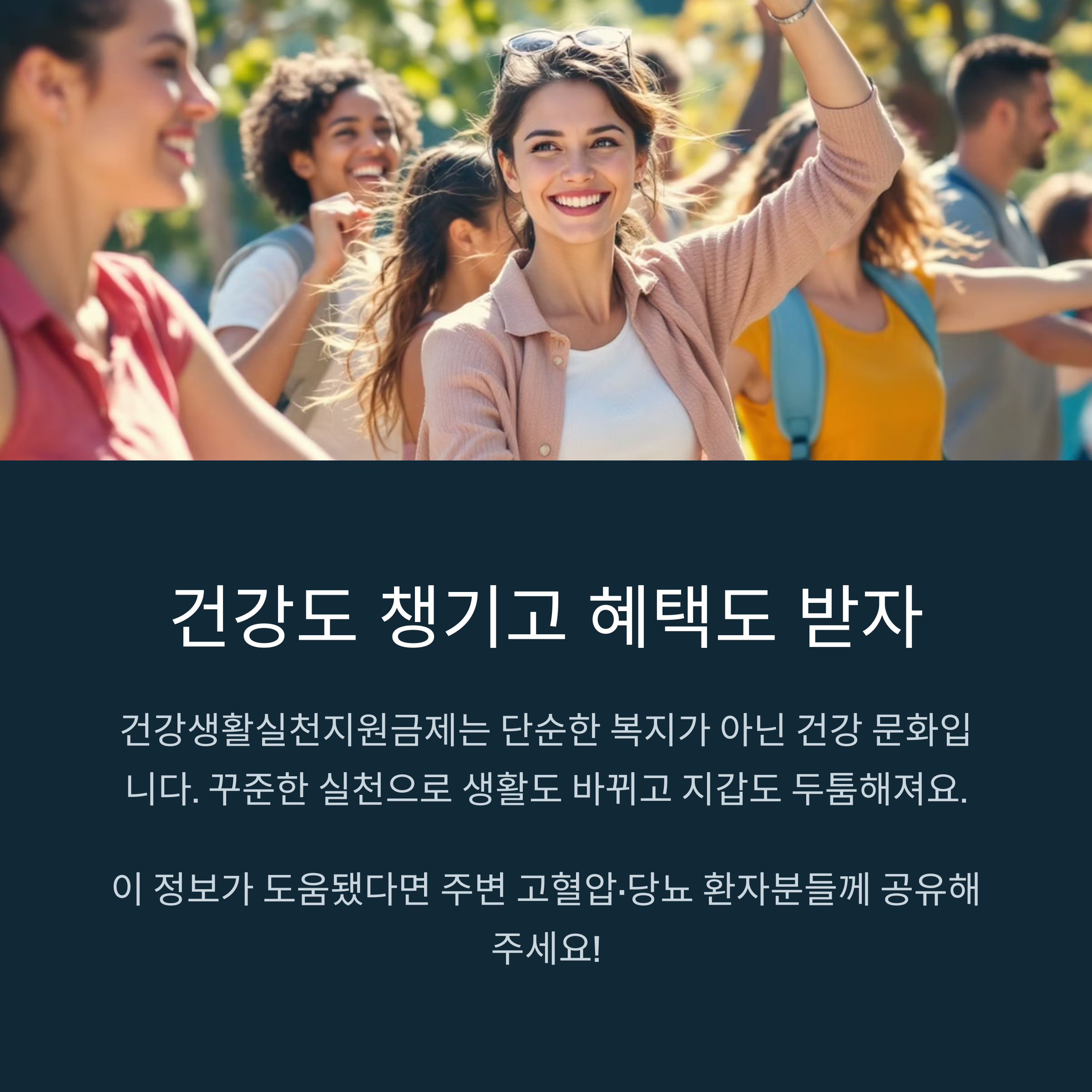 이 제도는 건강위험군인 국민이 건강을 실천하면 포인트 형태로 지원금을 지급해주는 제도예요. 특히 혈압·당뇨 관리 환자는 가장 우선적인 참여 대상이기 때문에 지금 신청해두는 게 좋아요.