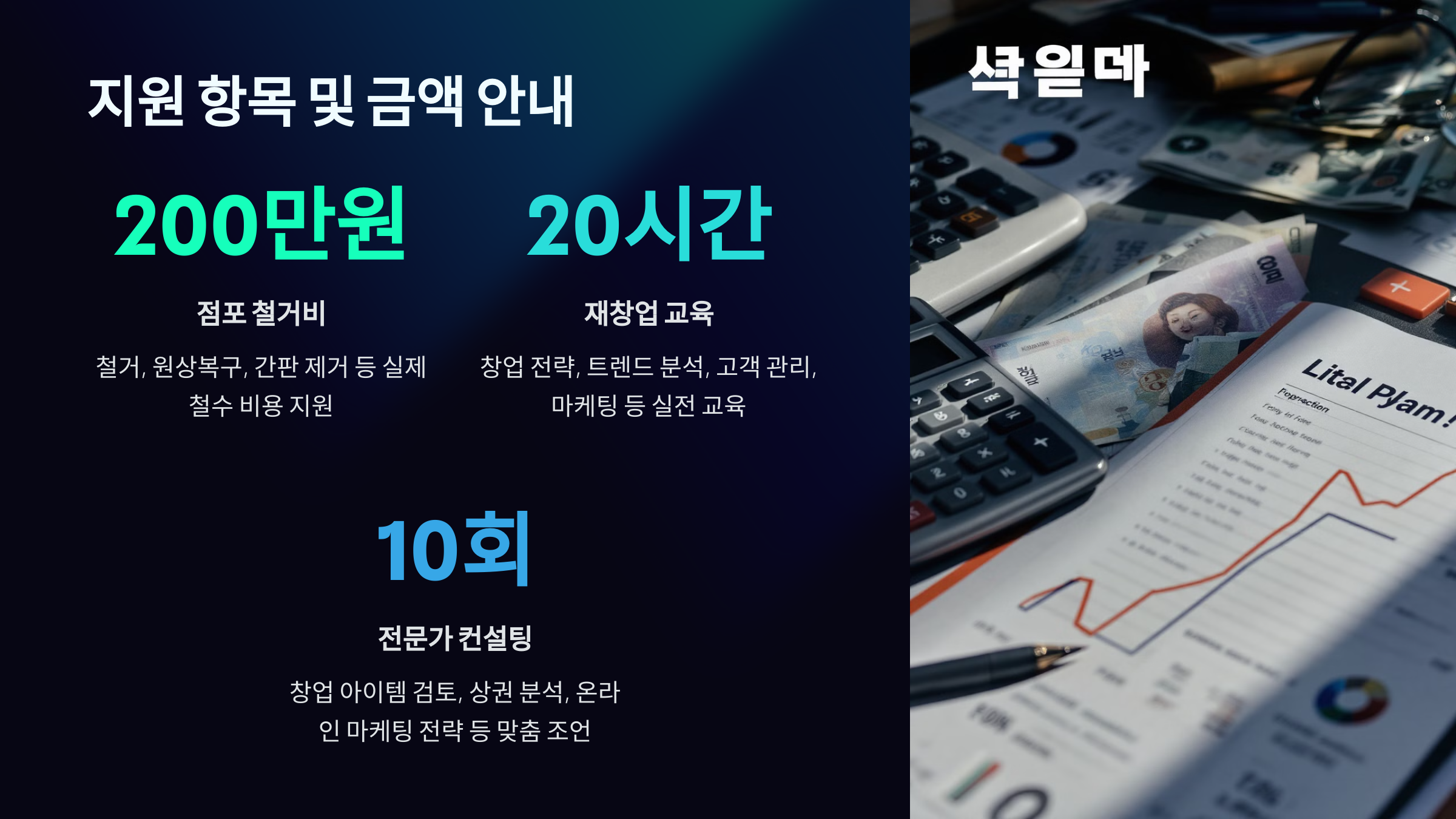 | 지원 항목 | 폐업지원 + 재창업 교육 + 컨설팅 |