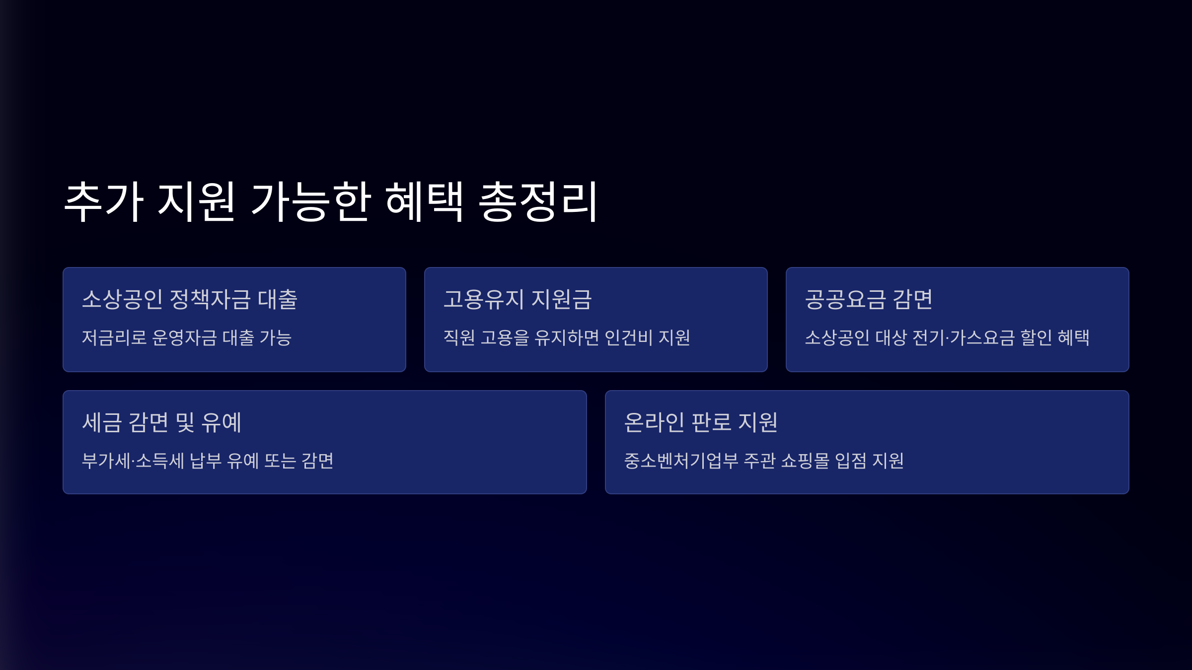 • 전기·가스요금 감면 – 소상공인 대상 공공요금 할인 혜택