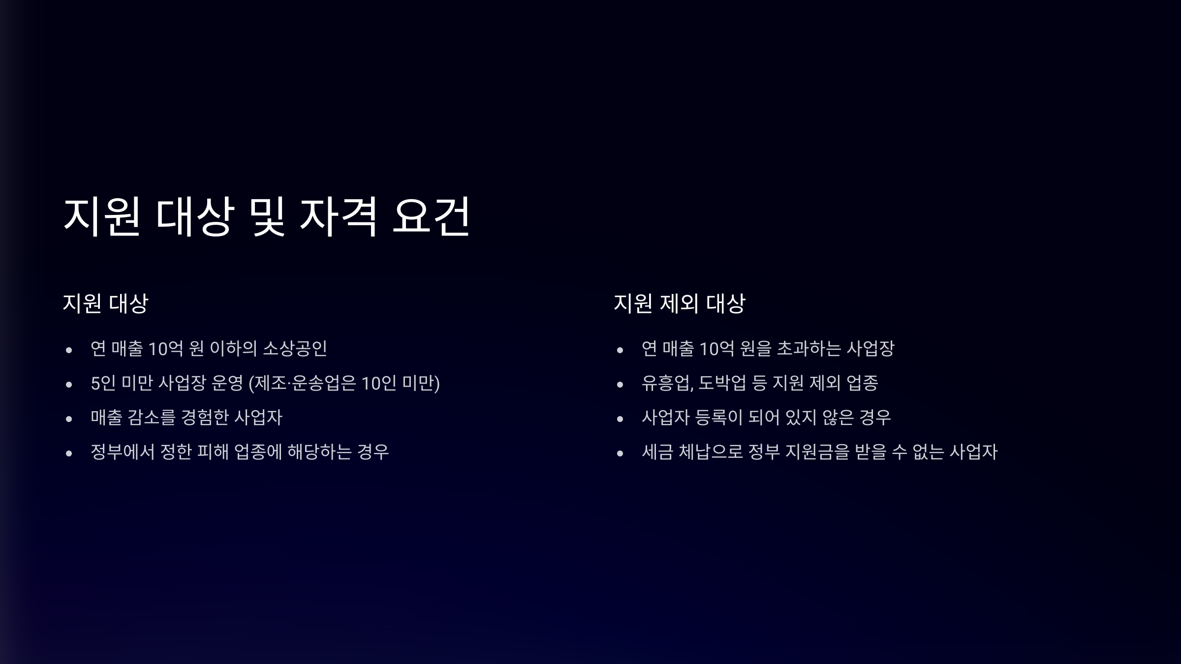 소상공인 지원금을 받으려면 지원 대상 요건을 충족해야 해요. 정부는 사업 규모, 업종, 매출 감소 여부 등을 기준으로 지원 대상을 정하고 있어요.