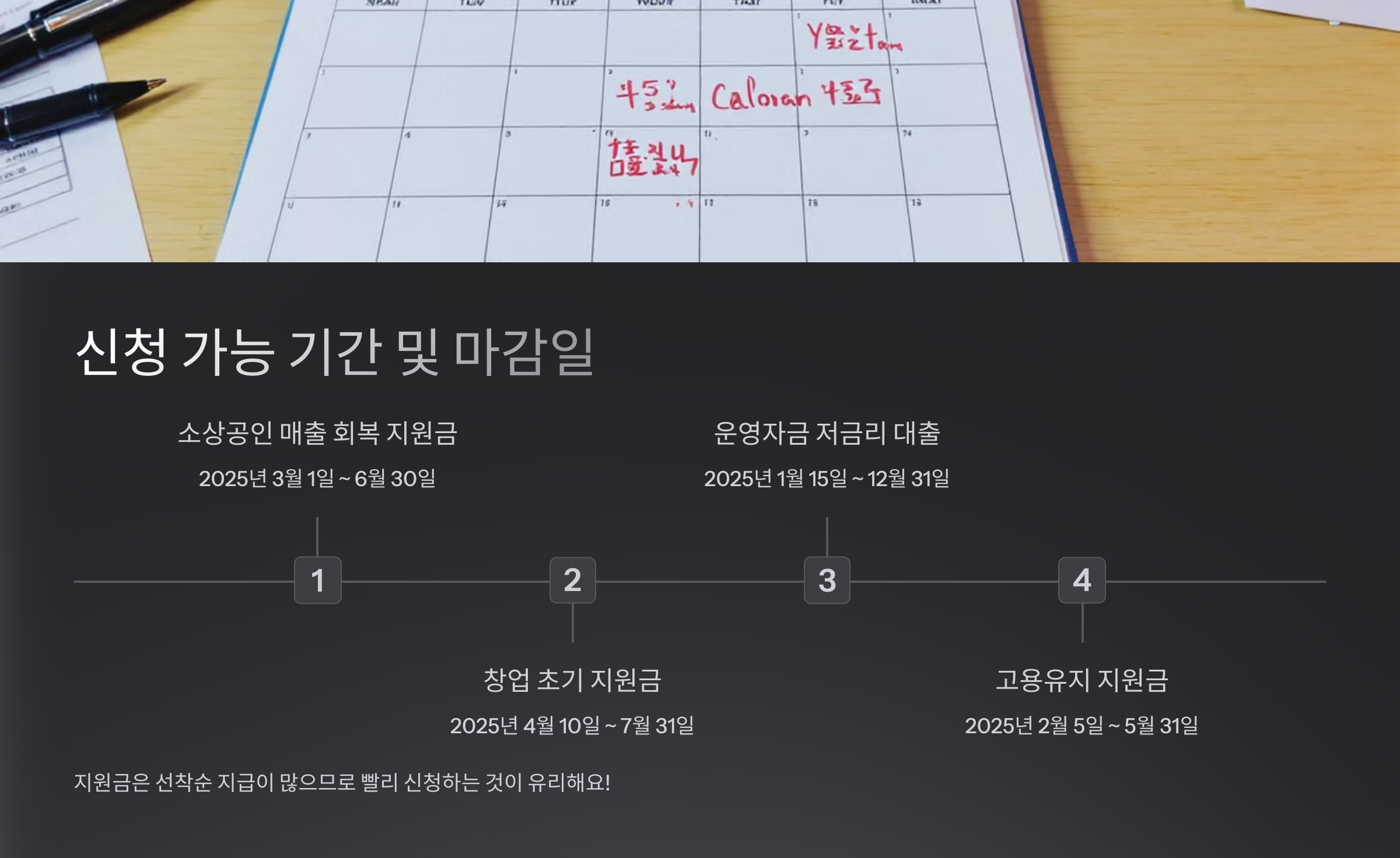 소상공인 지원금은 예산이 한정되어 있기 때문에 신청 기간 내에 접수하지 않으면 지원받을 수 없어요!