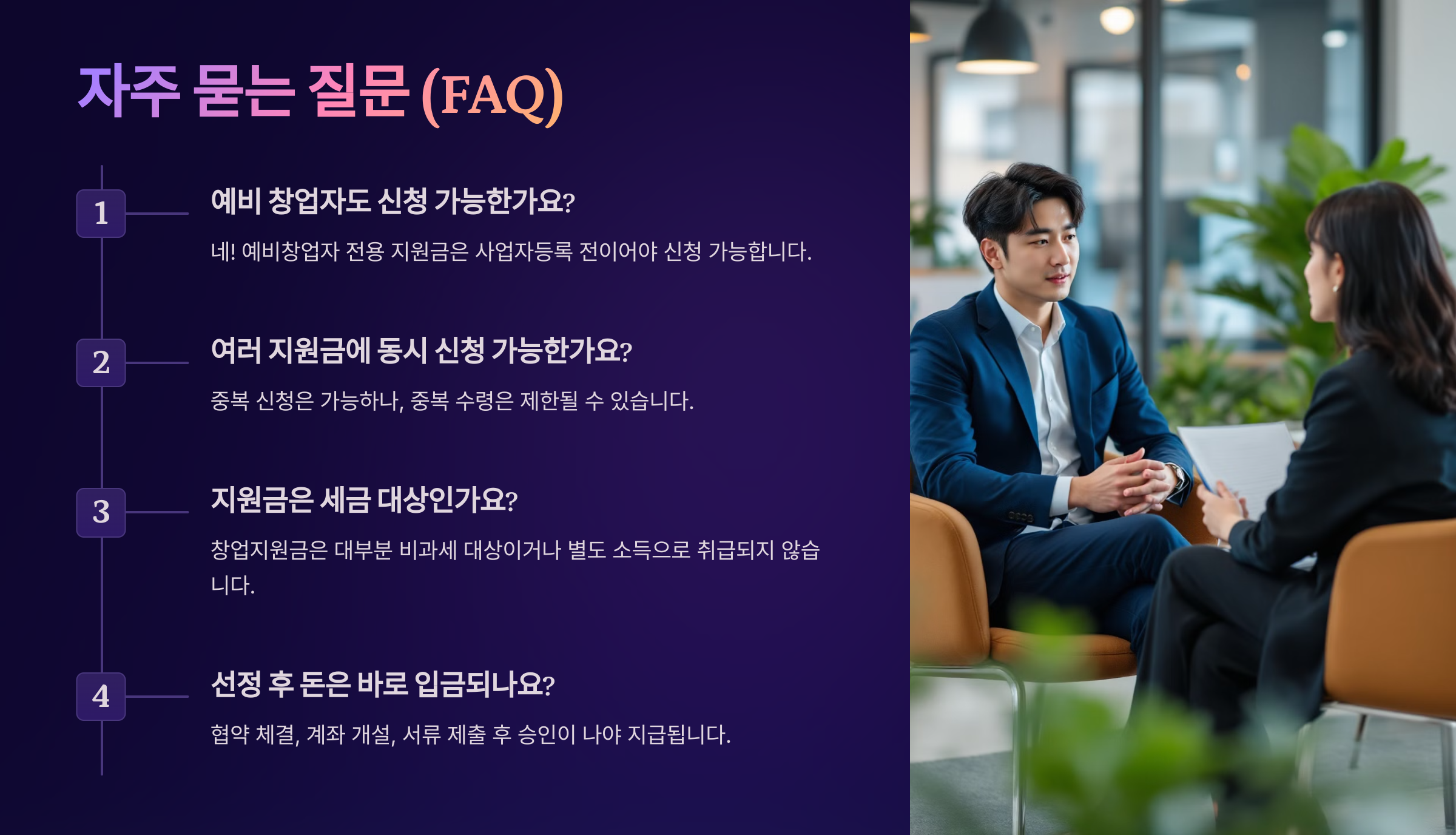 ❓ 창업지원금 자주 묻는 질문 (FAQ)