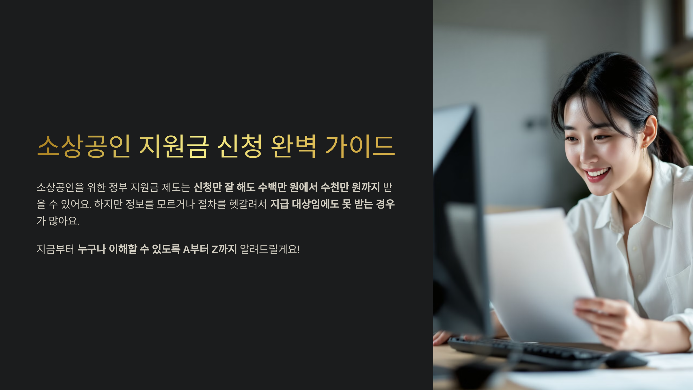 그래서 지금부터 누구나 이해할 수 있도록 지원금 신청 자격부터 서류, 신청서 작성 꿀팁, 심사 결과까지 A부터 Z까지 알려드릴게요!