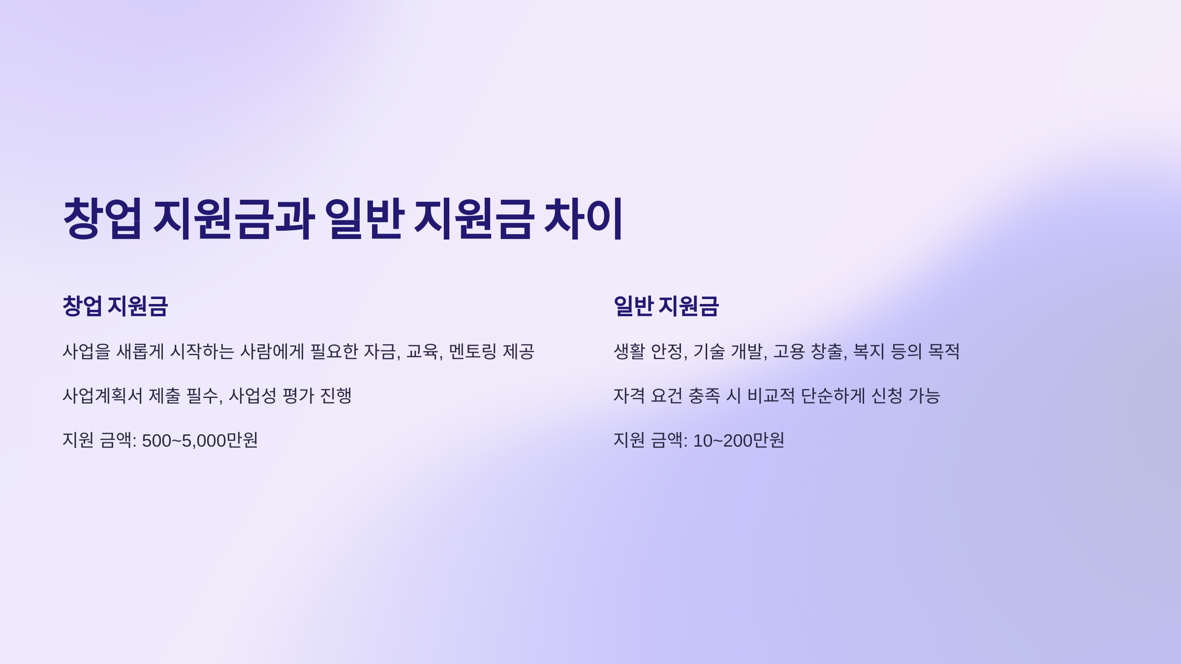 | 항목 | 창업 지원금 | 일반 지원금 |
