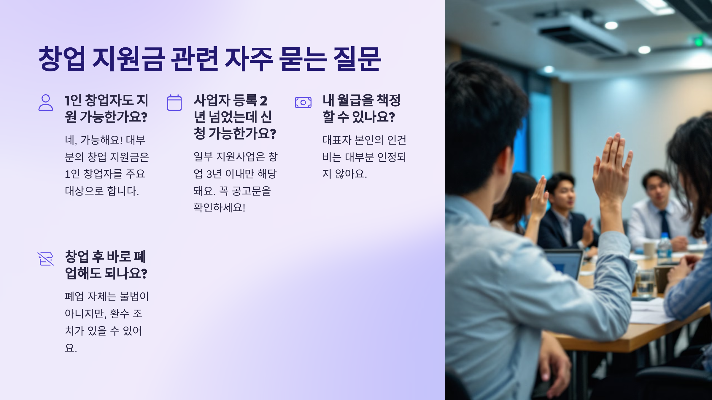 창업 지원금 관련 자주 묻는 질문 (FAQ)❓