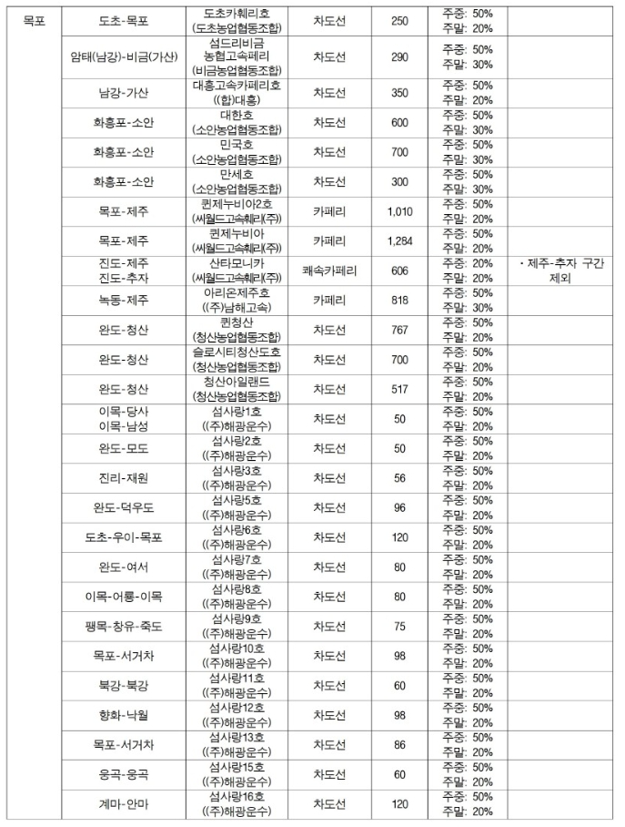 ※ 목포-제주, 진도-제주 항로의 선박이용은 씨월드 고속훼리(1577-3567, http://seaferry.co.kr)로 문의하시길 바랍니다.