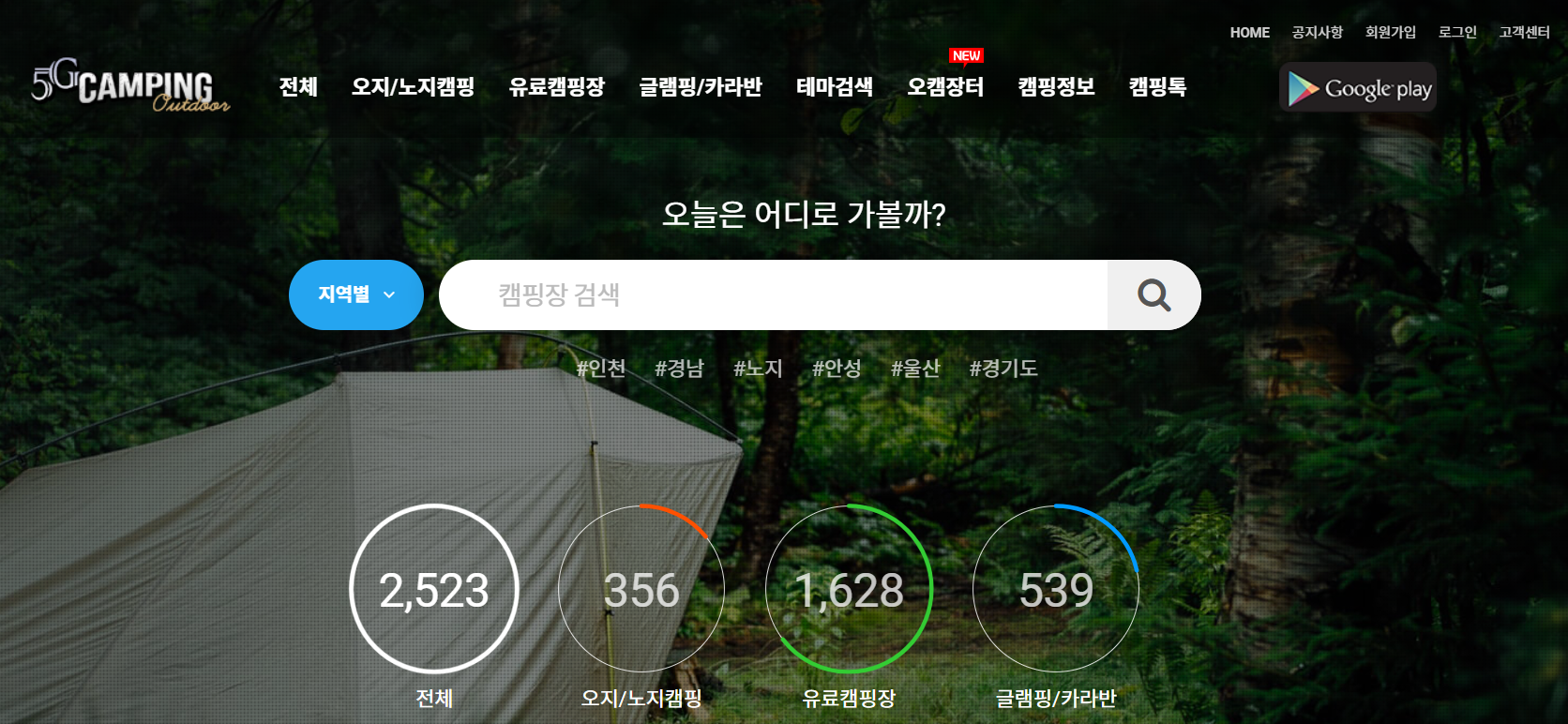 - 테마별, 지역별로 손쉽게 캠핑장 검색 가능