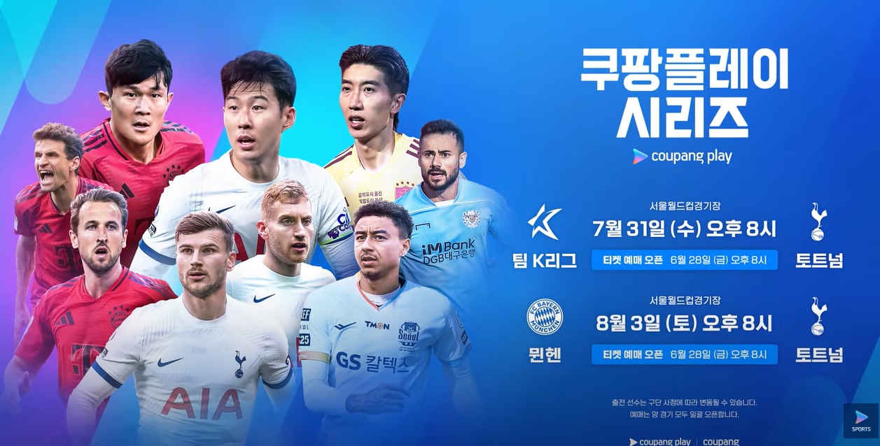 쿠팡플레이 시리즈는 매년 열리는 쿠팡 와우 멤버십 회원 전용의 주요 스포츠 이벤트입니다. 이 행사는 쿠팡플레이가 직접 주최하고, 주관하며, 중계까지 합니다. 손흥민과 김민재 등 두 팀의 스타 선수들이 출전하는 이번 경기를 꼭 놓치지 마세요!