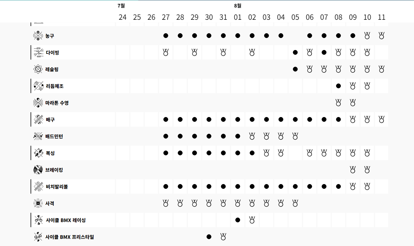 각 종목별로 예선, 준결승, 결승 경기가 진행되며, 다양한 메달리스트들이 탄생할 것입니다.
