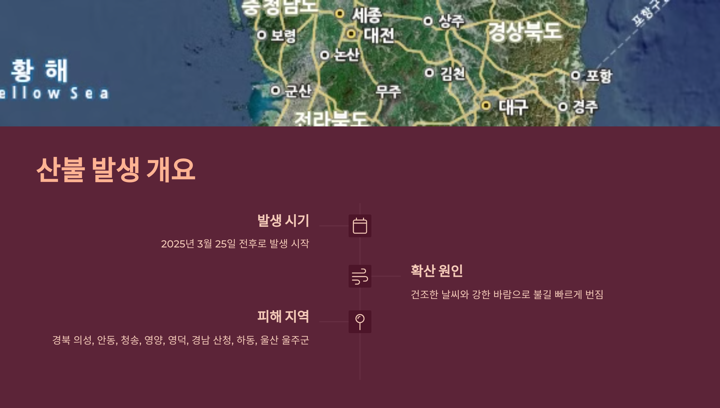산불은 2025년 3월 25일 전후로 경북 북부와 경남, 울산 등에서 발생하기 시작했어요. 건조한 날씨와 강한 바람이 겹치면서 불길이 빠르게 번졌고, 전국 11곳에서 동시다발적으로 산불이 발생했어요.