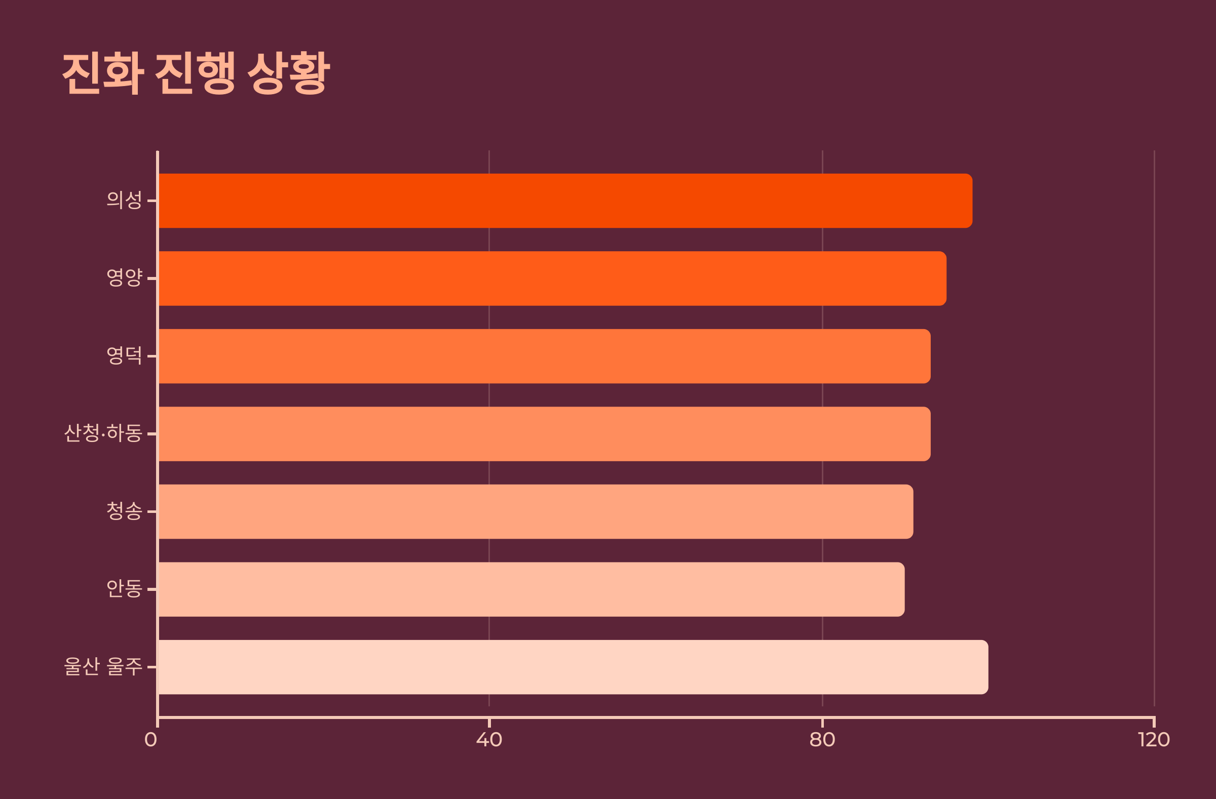 A7. 의성 98%, 청송 91%, 안동 90% 등 대부분 지역에서 90% 이상입니다.