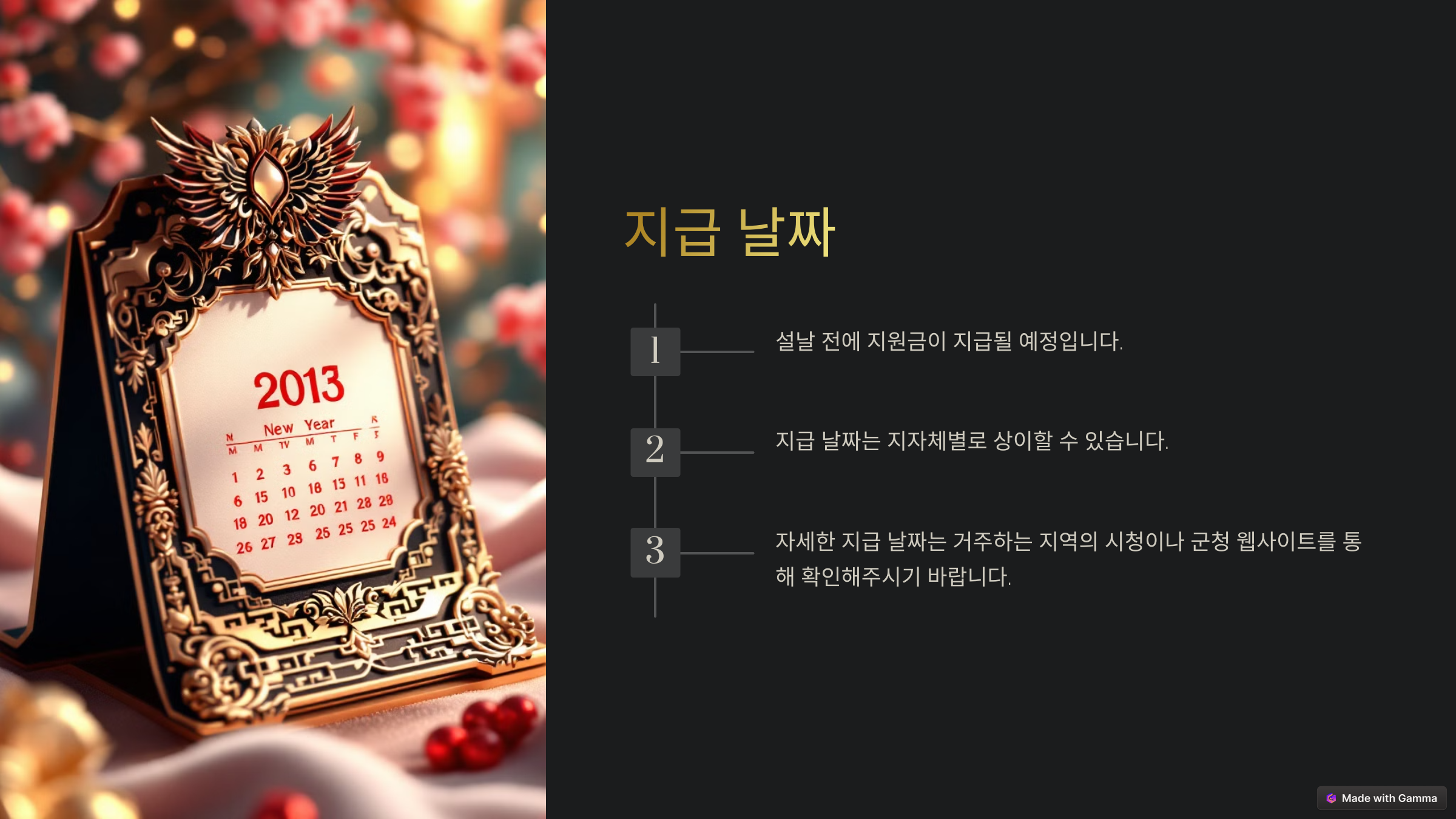 - 각 지자체마다 신청 기간이 다르므로 거주 지역의 공지사항을 반드시 확인해야 합니다. 보통 설날 한 달 전부터 신청이 시작되며, 일부 지역은 조기 마감될 수도 있습니다.