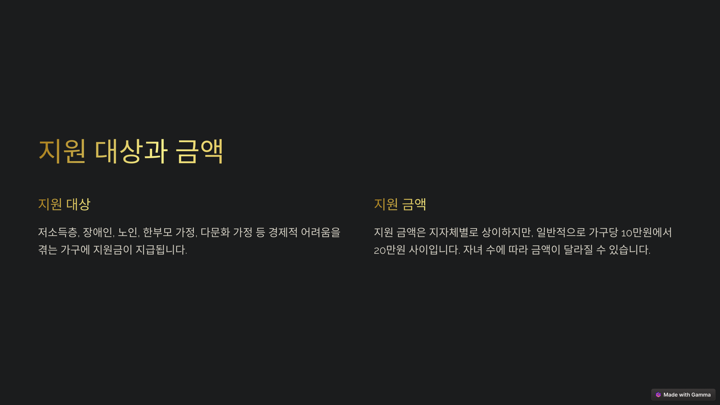 지원금은 현금, 지역 화폐, 상품권 등의 형태로 지급될 수 있으며, 중복 수혜 여부도 사전에 확인하는 것이 중요합니다.