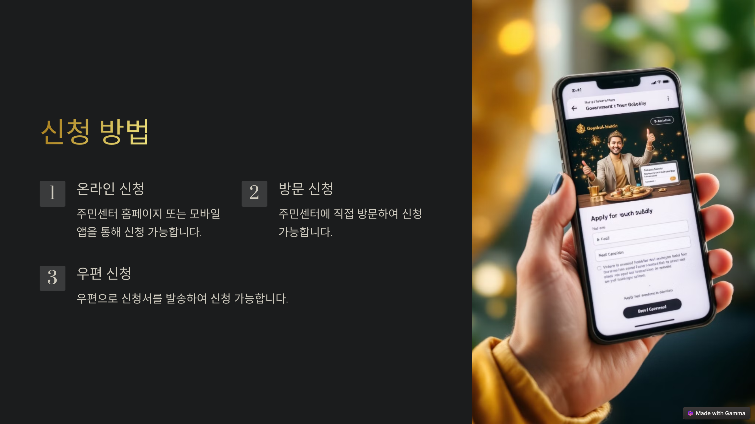 지원금 신청은 오프라인과 온라인 방식으로 진행됩니다. 주민센터를 직접 방문하여 신청하는 방법과 각 지자체 공식 홈페이지를 통해 온라인으로 신청하는 방법이 있습니다. 일부 지자체에서는 신청서를 제출하면 자동 심사 후 지급하는 방식도 있으므로, 본인의 거주 지역 신청 방법을 정확히 확인하는 것이 필요합니다.