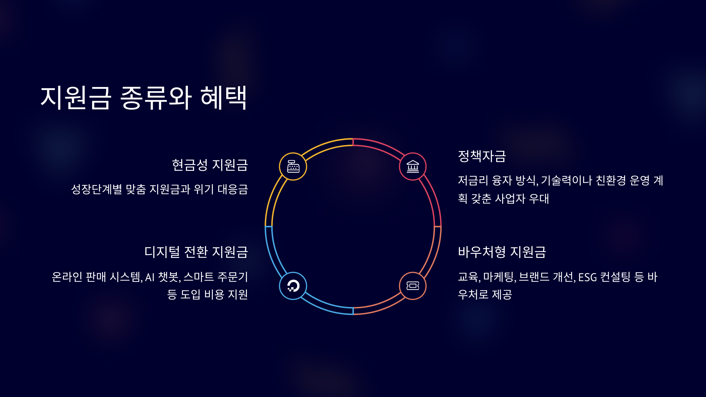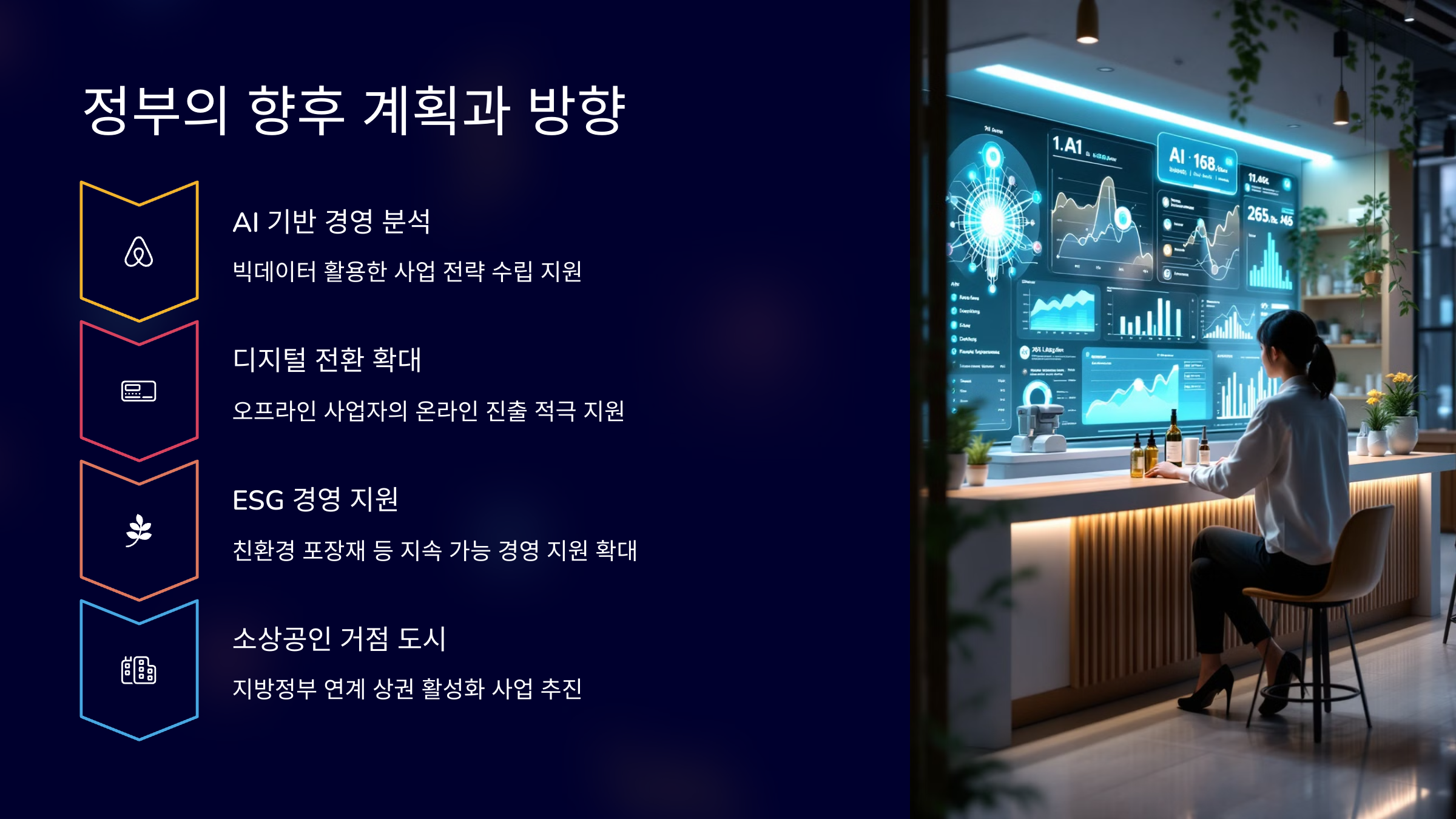 즉, 위기 극복 중심의 현금성 지원에서 ‘경쟁력 있는 소상공인 육성’으로 무게 중심이 이동 중이에요.