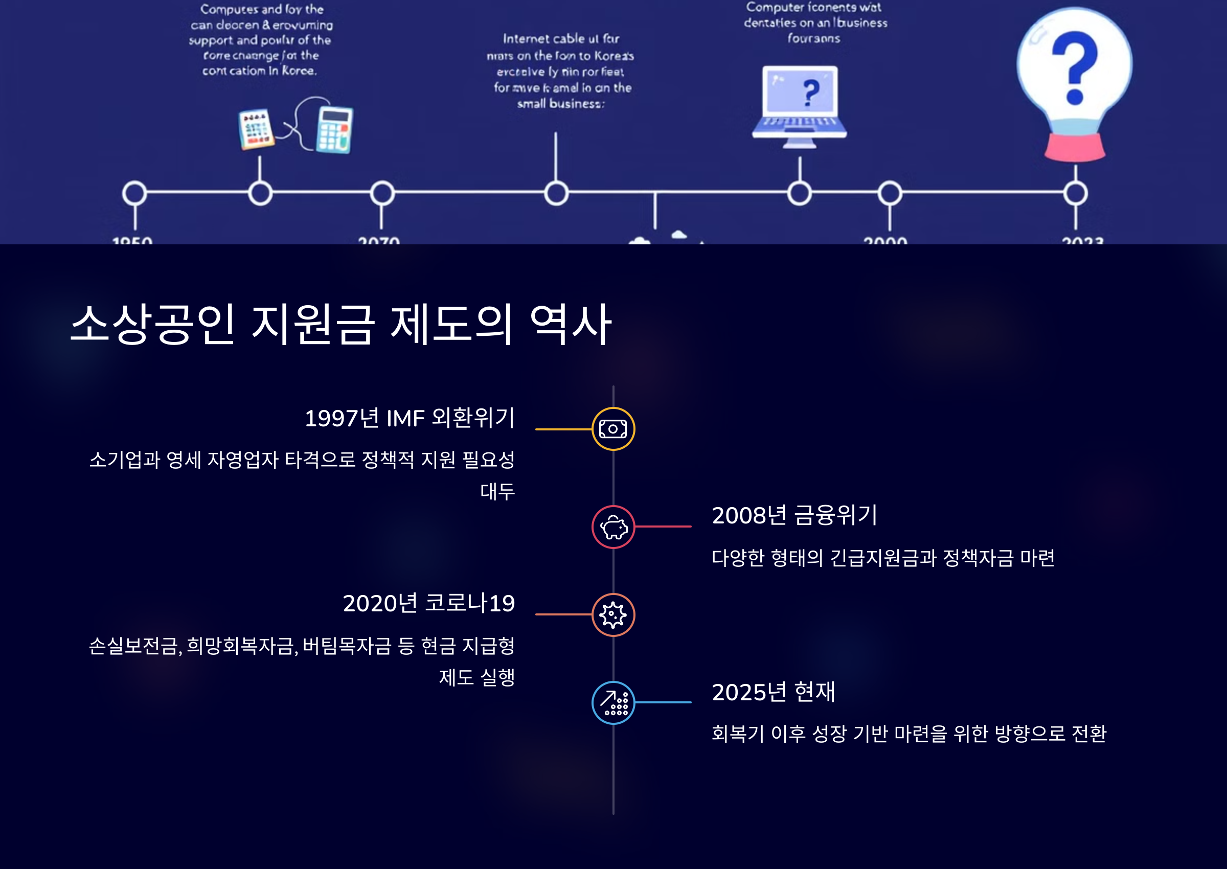 소상공인 지원금 제도는 우리나라에서 경제 위기나 사회적 충격에 대응하기 위한 정부의 중요한 정책 수단이에요. 특히 1997년 IMF 외환위기 이후 소기업과 영세 자영업자들이 큰 타격을 입으면서 정책적 지원의 필요성이 대두됐어요.