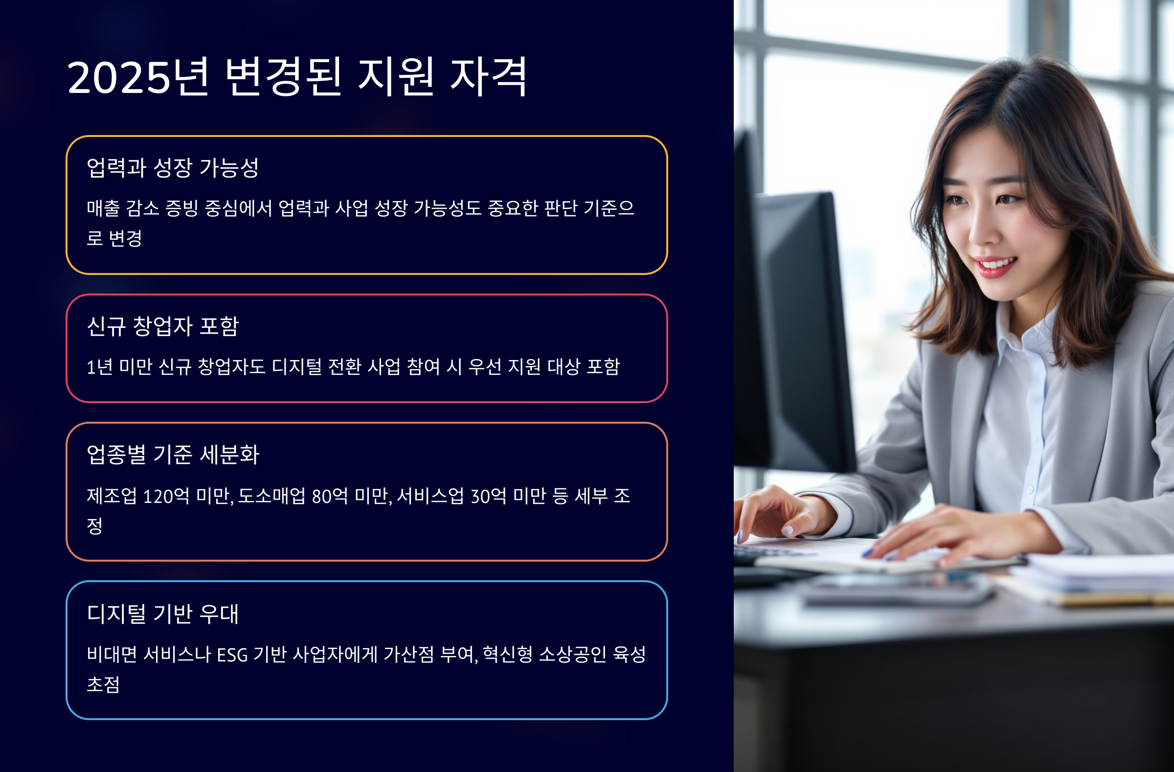 예를 들어 1년 미만 신규 창업자는 기존에는 일부 제외 대상이었는데, 2025년부터는 '디지털 전환 사업 참여 여부' 등 추가 조건을 만족하면 일부 우선 지원 대상에 포함되기도 해요.