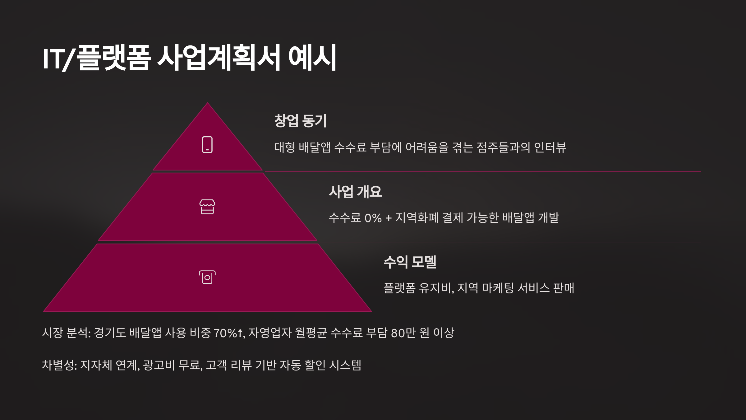 창업 동기 대형 배달앱 수수료 부담에 어려움을 겪는 점주들과의 인터뷰에서 착안