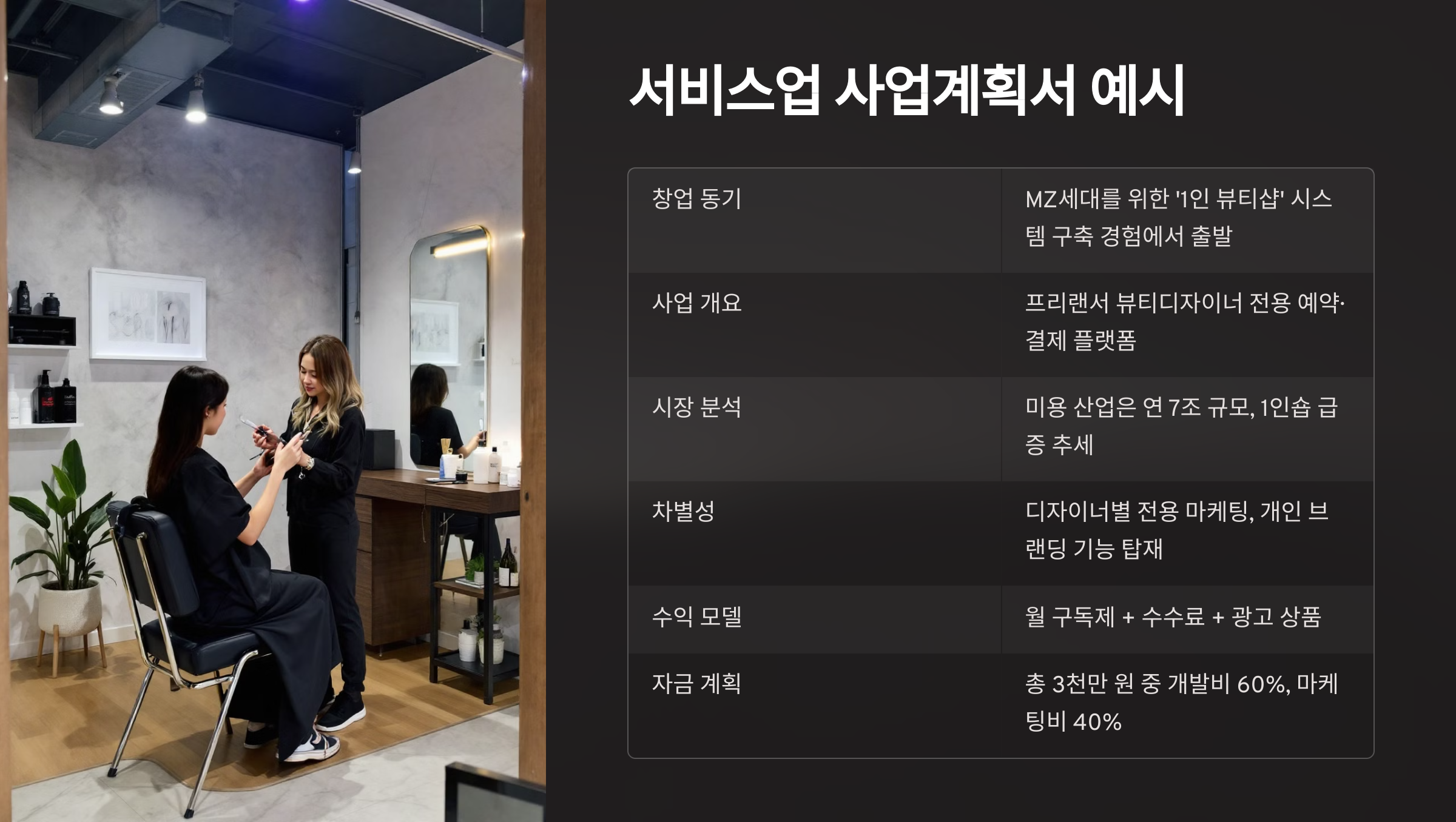 💇‍♀️ 청년 뷰티 서비스 창업 예시