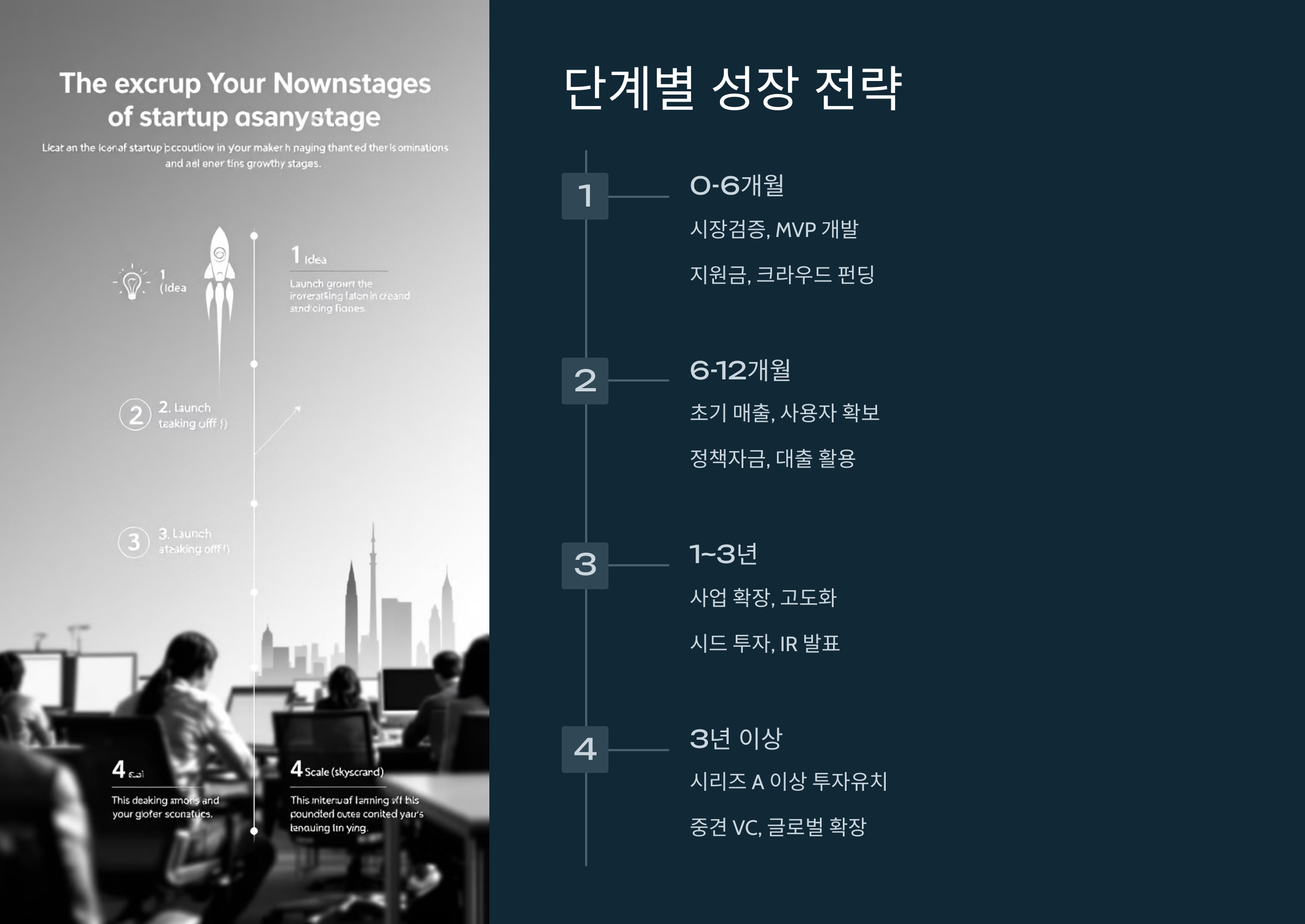 | 6~12개월 | 초기 매출, 사용자 확보 | 정책자금, 대출 활용 |