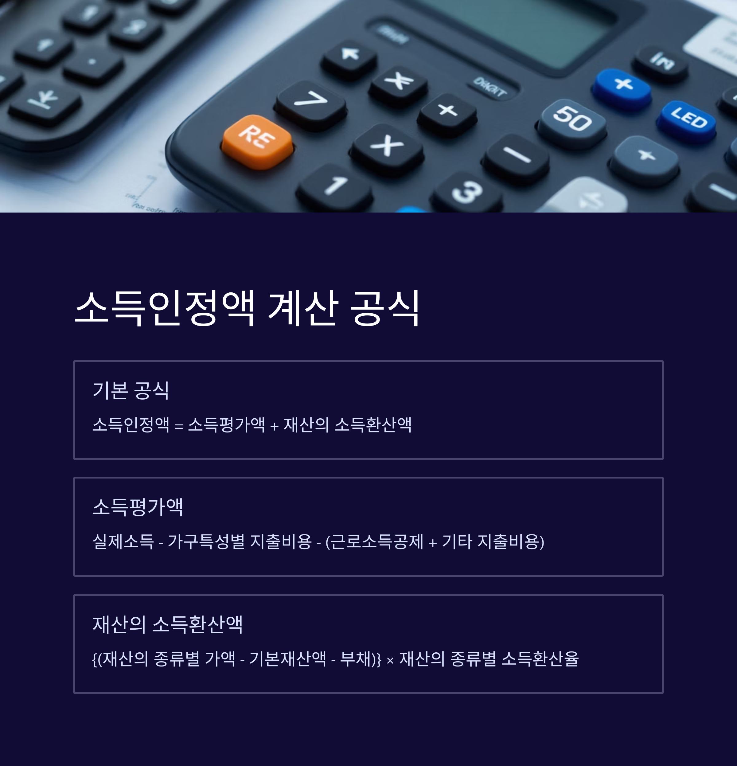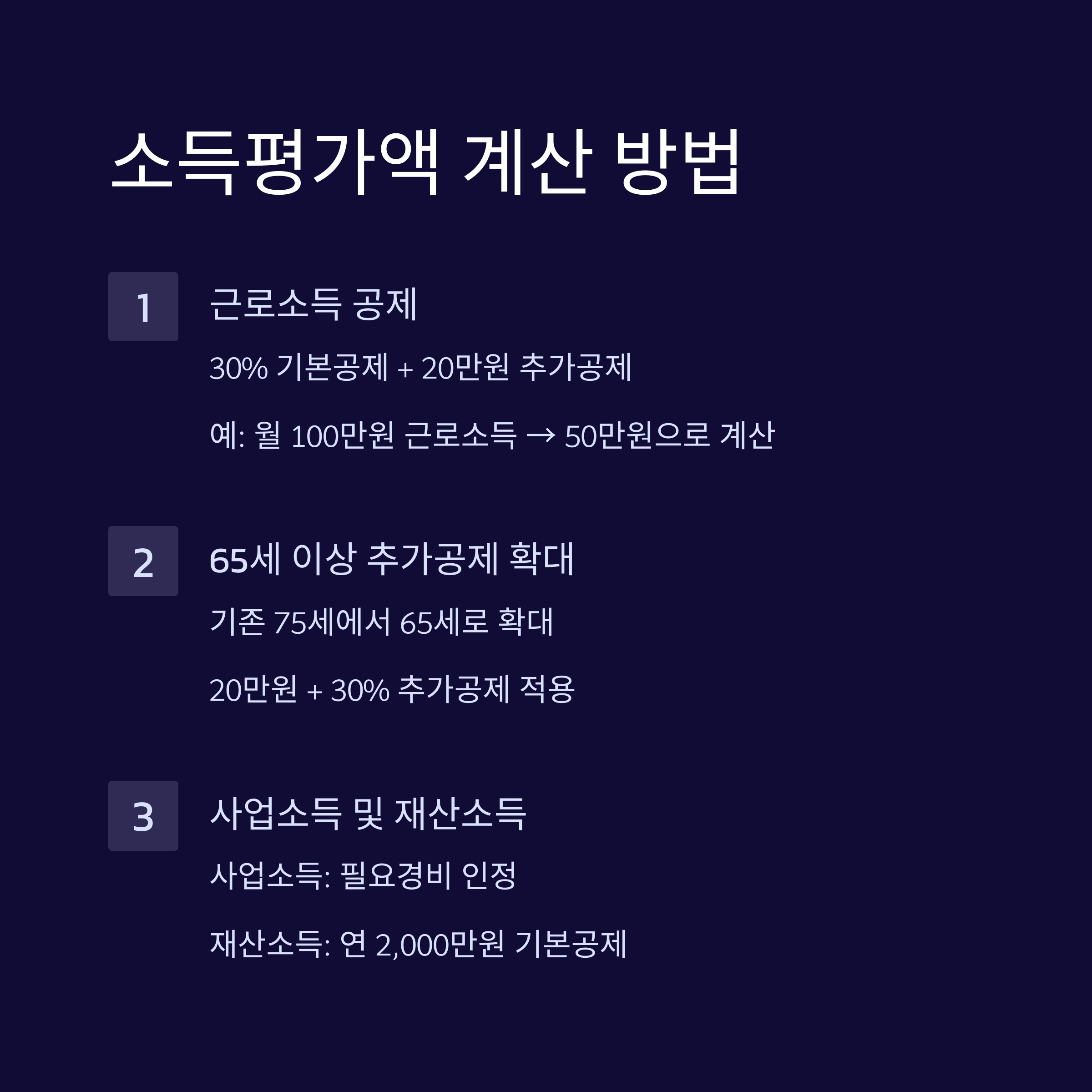 | 2단계 | 소득평가액 계산 | 각종 공제 적용 |