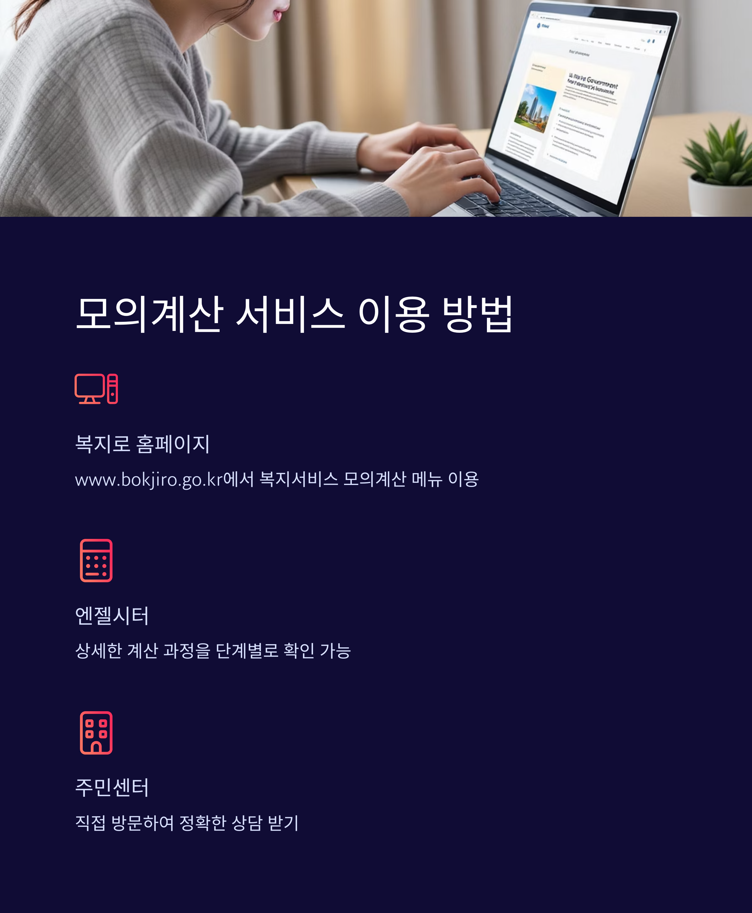 모의계산 결과는 참고용으로만 활용해야 해요. 실제 신청 시에는 관련 서류를 통해 정확한 소득과 재산을 확인하기 때문에 모의계산 결과와 다를 수 있어요. 하지만 대략적인 자격 여부는 충분히 확인할 수 있으니 신청 전에 미리 확인해보는 것이 좋아요. 모의계산 결과가 긍정적이라면 주민센터나 구청에 방문해서 정식으로 신청해보시길 바라요.