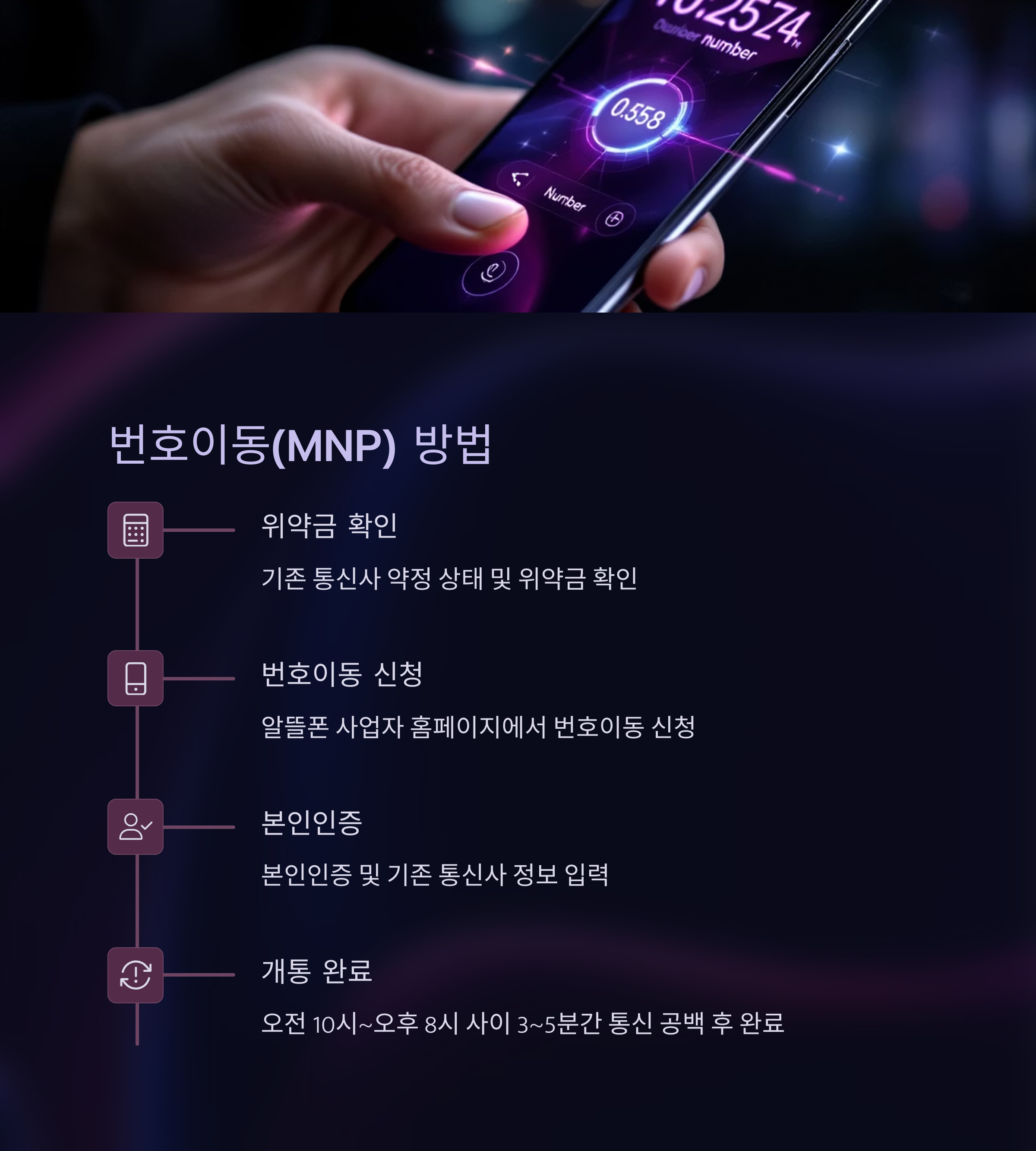 기존 통신사 번호를 그대로 유지하면서 알뜰폰으로 전환하는 걸 '번호이동(MNP)'이라고 해요. 많은 사람들이 전화번호 변경 없이 통신비만 줄일 수 있어서 이 방법을 선호하죠.