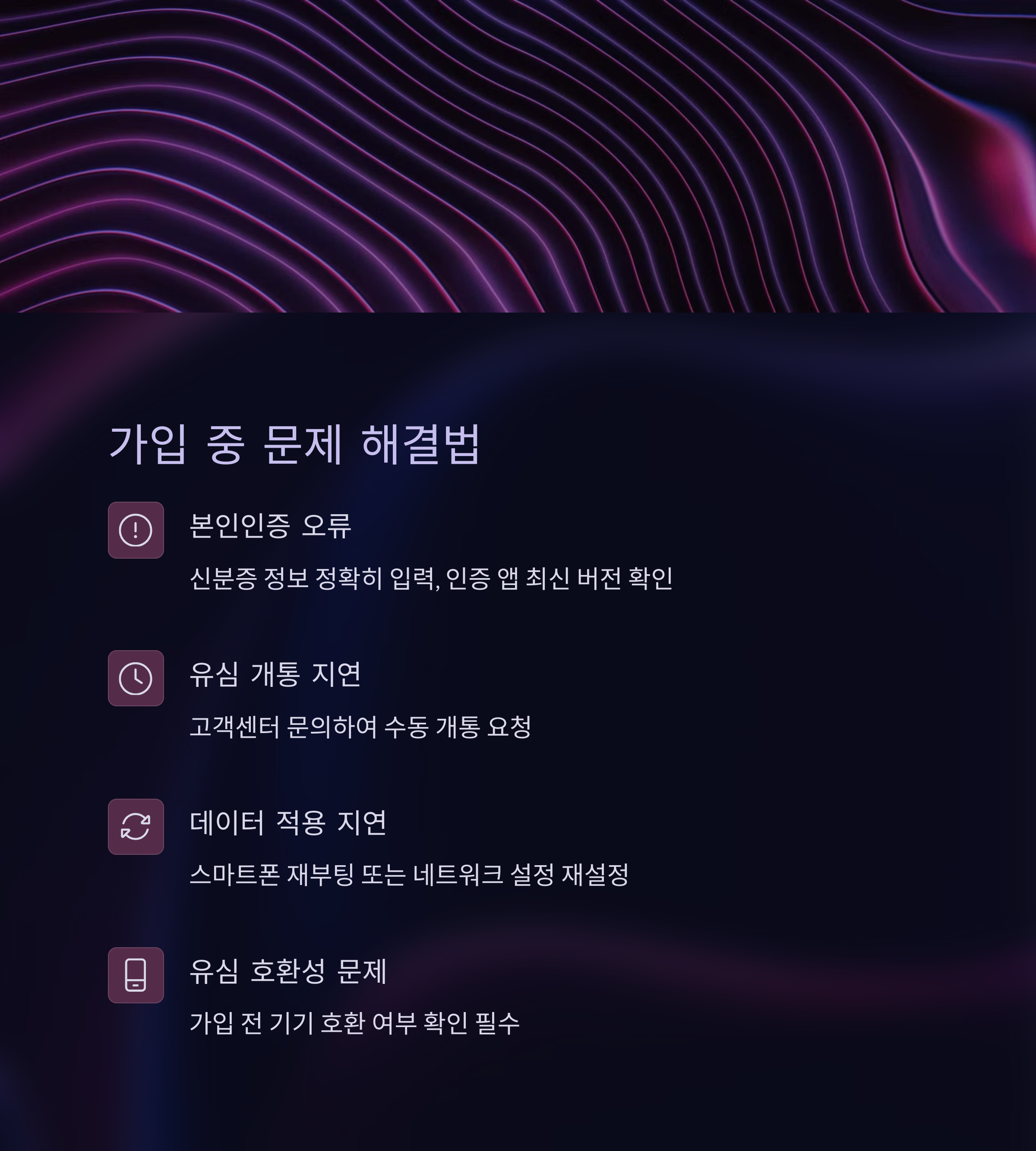 두 번째는 유심 개통 지연이에요. 유심이 도착했지만 개통이 안 되는 경우엔 고객센터에 문의해서 수동 개통 요청을 할 수 있어요. 개통 완료 문자나 안내 문자가 오지 않으면 문제가 있는 거예요.