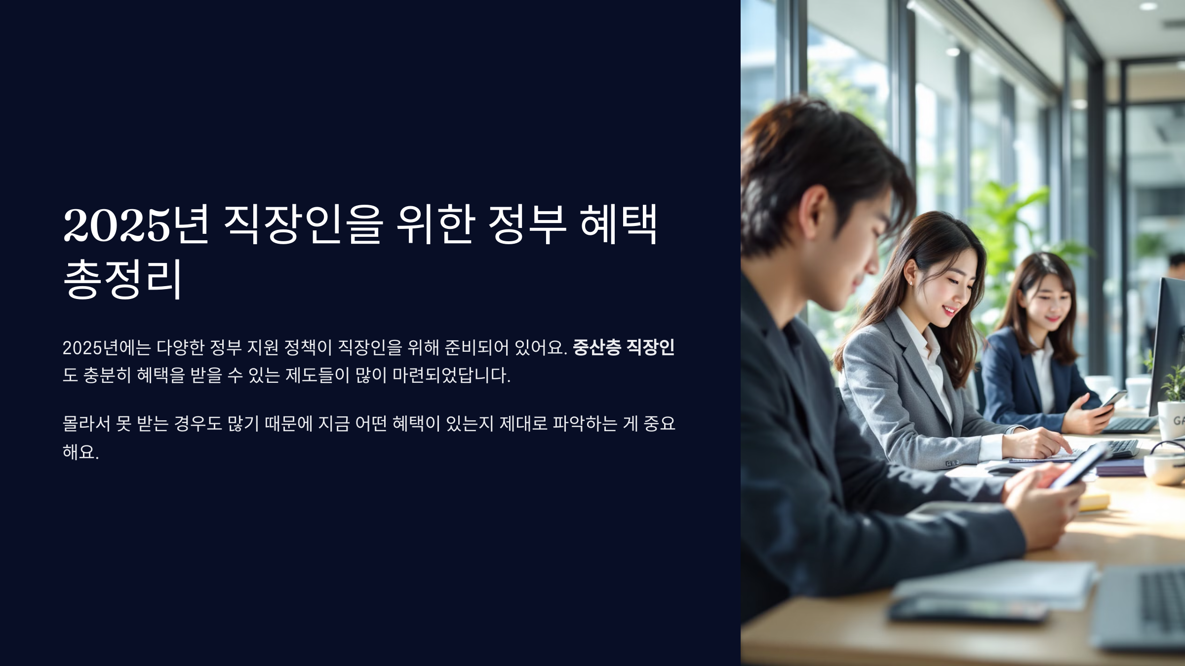 2025년에는 다양한 정부 지원 정책이 직장인을 위해 준비되어 있어요. 단순히 저소득층이나 청년만을 위한 혜택이 아니라, 중산층 직장인도 충분히 혜택을 받을 수 있는 제도들이 많이 마련되었답니다.