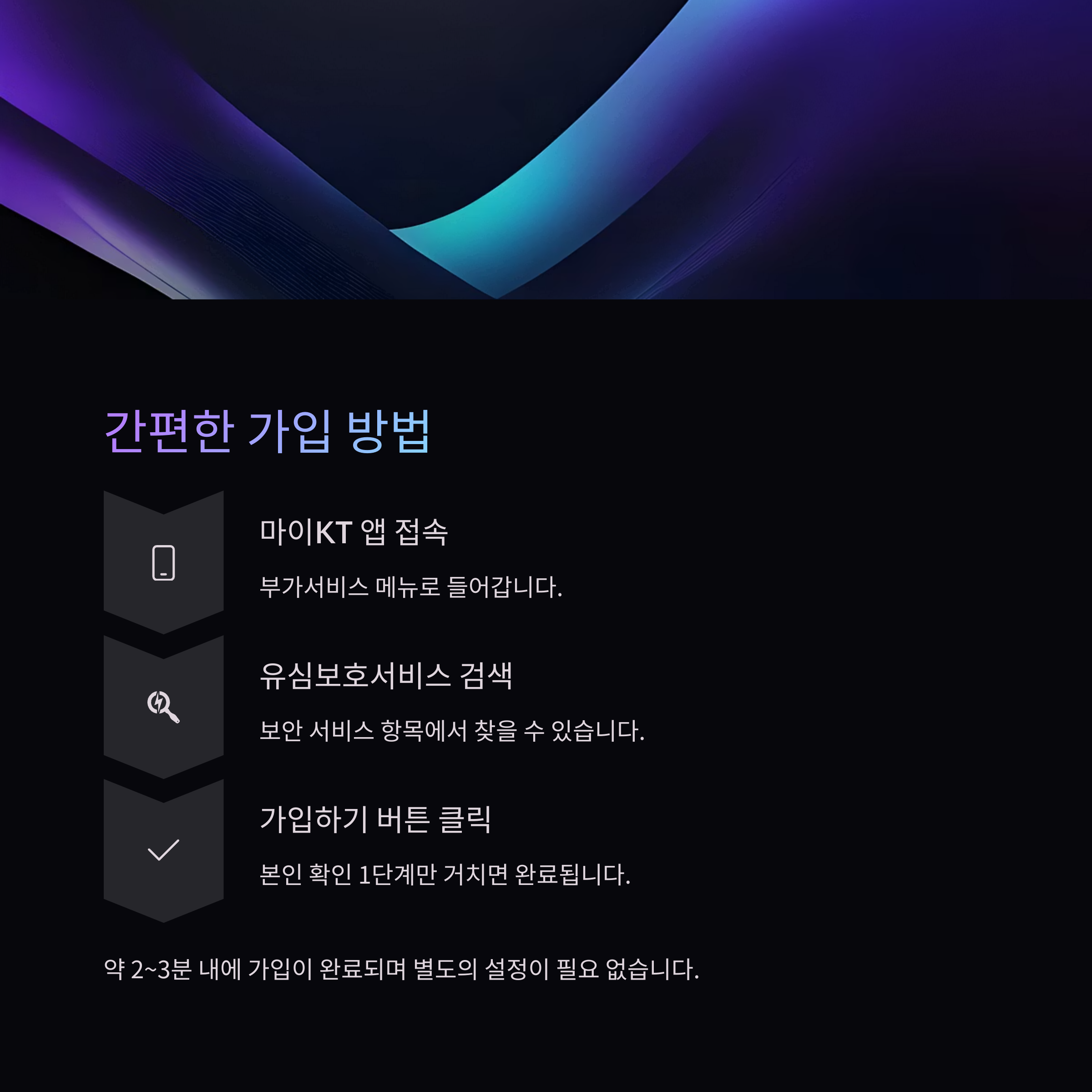 | KT 홈페이지 | 로그인 → 상품/서비스 → 가입 | 약 3분 |