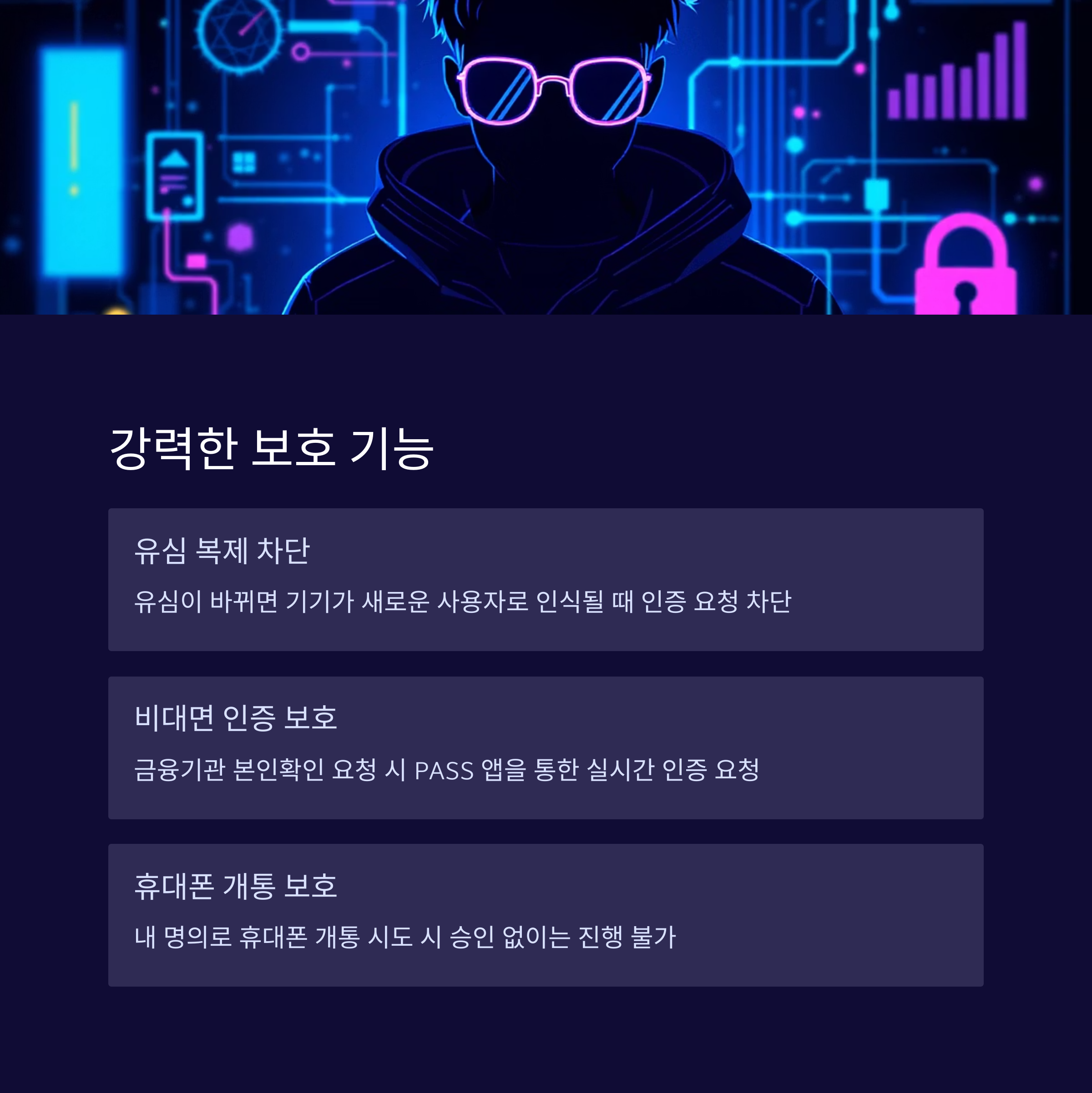 대표적으로 이 서비스는 본인 인증, 유심 변경, 휴대폰 개통 요청, 통신서비스 변경 시도를 차단할 수 있어요. 누군가 내 명의로 핸드폰 개통을 시도한다면? PASS 앱에서 바로 알림이 오고, 내가 직접 승인하지 않으면 진행이 되지 않아요.