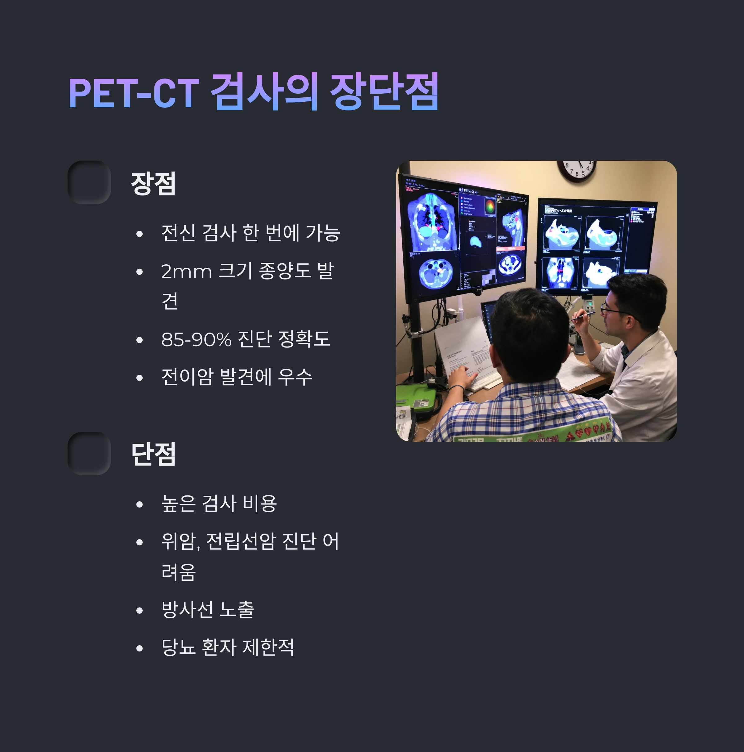 검사 비용이 높은 이유는 고가의 장비와 방사성 의약품, 전문 의료진이 필요하기 때문이에요. 하지만 암의 조기 발견과 정확한 진단을 위해서는 매우 가치 있는 투자라고 할 수 있어요. 특히 가족력이 있거나 고위험군에 속하는 분들은 정기적인 검사를 고려해보시는 게 좋아요. 👨‍⚕️