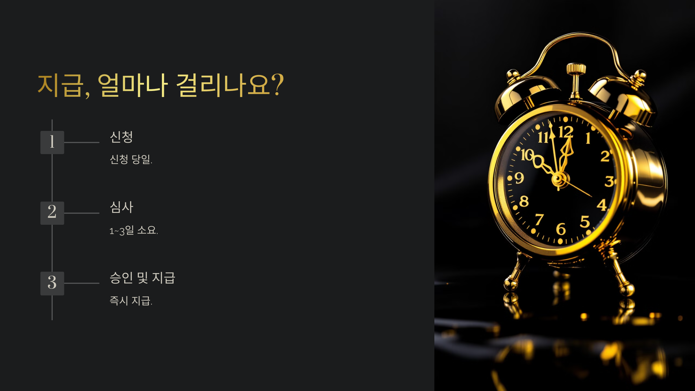 | 심사 기간 | 1~3일 내 지급 결정 | 보통 1~2개월 |