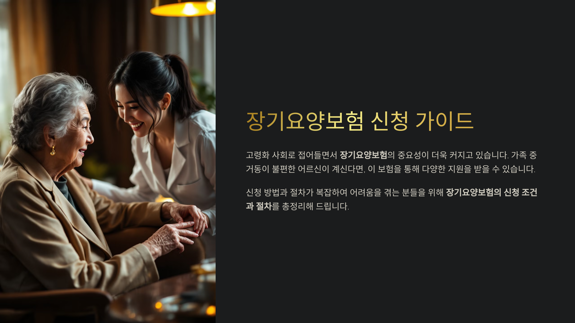 하지만 신청 방법과 절차가 복잡해 어려움을 겪는 분들이 많아요. 그래서 오늘은 장기요양보험의 신청 조건과 절차를 총정리해서 알려드릴게요! 💡